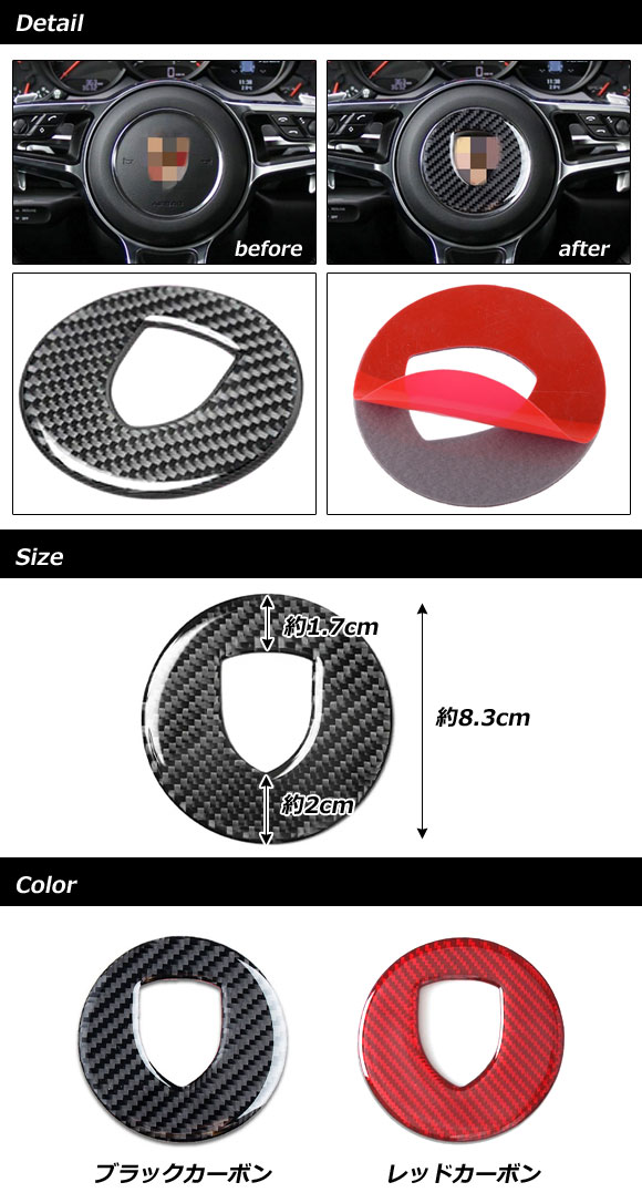 ステアリングエンブレムガーニッシュ ポルシェ 718ケイマン 982 2016年04月~ ブラックカーボン カーボンファイバー製
